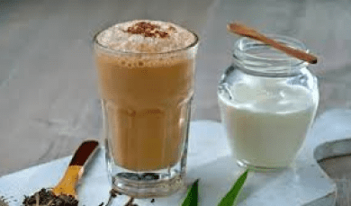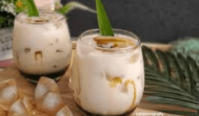 4,4Teh Shake, a typical East Javanese drink from Surabaya, consists of a mixture of tea, milk, brown sugar and ice cubes that is shaken until frothy. Served in a large glass, it can be enjoyed hot or cold. The sweet taste of brown sugar and creamy taste of milk makes it a favorite in East Java. The foamy texture when served adds to the enjoyment.