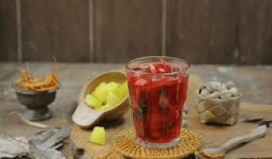 4,8Wedang Secang, a rare drink from Mojokerto, is made from spices such as secang wood, cardamom, cinnamon, lemongrass, ginger and palm sugar. Believed to be the King of Majapahit's favorite drink, it has many health benefits, such as increasing stamina and treating stomach and blood vessel problems.