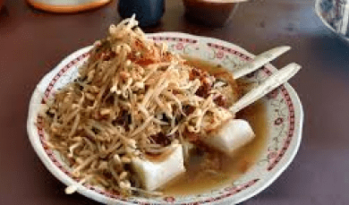 4,6Lontong Balap, an unforgettable Surabaya specialty, is inspired by the enthusiastic actions of sellers who "race" to attract the attention of buyers. Each bite presents a combination of soft lontong, fresh bean sprouts, and crunchy lentho in a savory peanut sauce, accompanied by a touch of the alluring spiciness of chili paste.