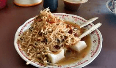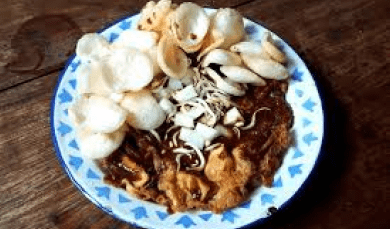 4,4Tahu campur, an iconic culinary dish from Lamongan, East Java, consists of beef soup, fried tofu, cassava cakes, bean sprouts, watercress, yellow noodles and shrimp crackers. Originating from Padenganploso Village, Lamongan, mixed tofu has received serious attention from the Regency Government, and is even planned to be patented as a typical food and superior product of Lamongan.