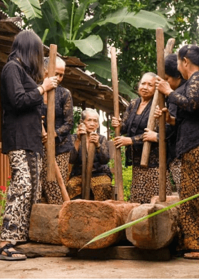 Kemiren Osing Tourism Village offers unique Osing culture and interesting activities such as traditional gedhogan and coffee-making traditions, as well as Osing Barong cultural performances and traditional Osing houses to explore.
